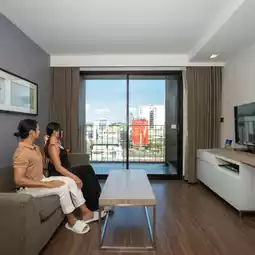 Wan and Fook stayed in a One-Bedroom Executive room. The room here is comfortable in a condo style with complete facilities, such as kitchenware, washing machine, TV, refrigerator, very complete. The room is divided into separate zones between the living room and bedroom.
