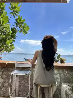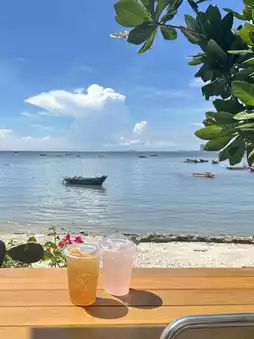 A cafe with a good mood, right by the sea. The atmosphere is 10/10.