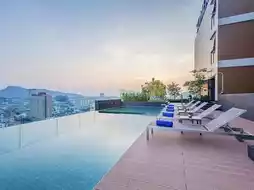 The hotel is located in the heart of Sriracha. It is a 4-star hotel with a rooftop swimming pool and a view of the bay. It is located in Sriracha District. It is a family-friendly hotel that feels like home. It has a fitness room and sauna, as well as a variety of breakfasts. The atmosphere is quiet. The room has a bathtub. The distance from Bangkok is about 120 kilometers. It takes about 2 hours to travel. #tripbestแจกโรงแรมฟรี