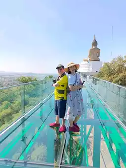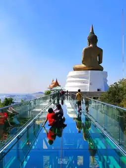 ▪️️Wat Khao Tabek is located in Si Racha District, Chonburi Province. It is another place to visit near Bangkok. You can come to worship and make merit, tie ribbons to bring good luck, and follow a nature study trail. The highlight of Wat Khao Tabek is the amazing viewpoint with a skywalk or glass bridge. You can see a 360-degree view of Chonburi Province. Both those who love to make merit and those who love to take pictures must check in.