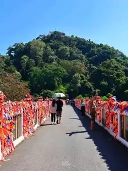 ▪️But before reaching the skywalk on the top of the mountain, you might need some leg strength because along the way you will encounter a concrete walkway with many colorful ribbons tied together. If you think you can't make it up, this is another viewpoint and a place where you can take beautiful photos and tie ribbons to bring good luck. But if you can make it up, let's continue.