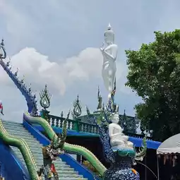 ⭐️A small monastery, convenient for worshiping and asking for blessings, near the city of Si Racha. The highlight is the Naga courtyard, enshrining the beautiful white Phra Phuttha Lila Naga Barami, which is a good viewpoint of Si Racha. There is also a Mani Naga crystal ball that allows you to see the view of Si Racha upside down. You have to take off your shoes to go up the courtyard. If you come during the day, the ground may be hot. The way up is quite steep. Cars should be able to go up steep hills.