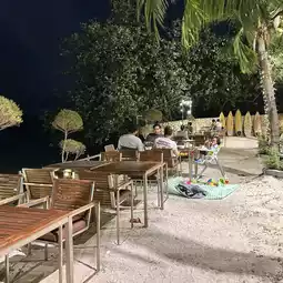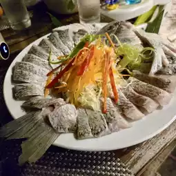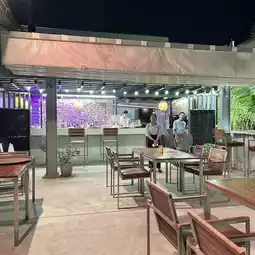 Sriracha in love beach bar is located in S Sriracha Hotel. The shop has 2 floors, located by the sea, the upper area is a bar, and the lower area is the sea. The wind blows very well, the view is good, the view is beautiful. The shop has a variety of food to choose from, such as pizza, Thai food, spicy salad, but we chose to eat the seafood shabu set, priced at 999.- and fish shabu, 799.-, sitting downstairs by the sea. In the evening, the view is very good, the air is good, romantic.