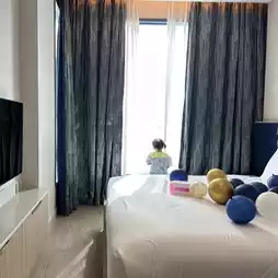 The hotel we went to felt that it was worth it. S Sriracha In terms of price, food, we booked for 2089.- Good price. When we arrived, the receptionist checked in very quickly, even though it was a long holiday. When we arrived at the room, we had to exclaim with amazement that every room was by the sea. There was a bathtub, a balcony, a spacious room, 1 bedroom and a separate living room. Then go down to the 3rd floor, there is a Kid's club and a saltwater pool with a sea view and a bar. In the hour, buy 1 get 1 free drink 🍷 The breakfast was average, you can eat it. I really like the atmosphere of the hotel. 📍Address: Sriracha, Chonburi #Beachfront hotel