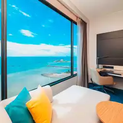 This high-rise hotel boasts seaview rooms, perfect for those who appreciate rooms with large windows.