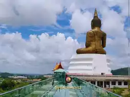 #AttractionsNearBangkok If you're looking for a place near Bangkok that offers both worship and light adventure, we recommend Wat Khao Tabaek in Chonburi. Located in Si Racha District, this temple stands out with its 200-meter glass skywalk, a highlight that draws visitors for a thrilling experience and stunning mountain views from a high angle. Walking across the glass bridge feels like you're walking on the sky! It's a stunning photo opportunity, a must-see. Furthermore, the climb to the skywalk requires a small metal staircase, making this journey not only a simple way to worship, but also a great workout and adventure. For those without a car, public transportation is convenient.