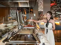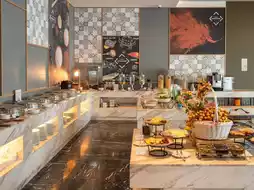 👩🏻🍳 Breakfast is served on the lobby floor, offering a buffet line with a diverse menu, including Japanese dishes and a wide selection of hot dishes.