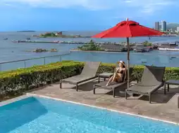 🍃 Enjoy a relaxing seaside getaway just over an hour from Bangkok at this stylish hotel with a stunning oceanfront setting and panoramic views. Enjoy the romantic sunset. Complete with amenities, including a restaurant, cafe, bar, sea-view pool, fitness center, and warm service. 🌅✨