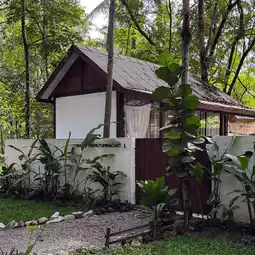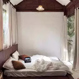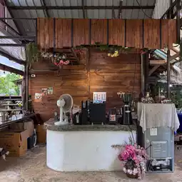 This minimalist-style garden-style accommodation and cafe is located in Sri Racha District, Chonburi Province. The atmosphere is wonderfully natural and shady. With only two bungalows, the atmosphere is peaceful and perfect for a relaxing getaway. There's also a cafe area offering food, coffee, non-coffee drinks, and baked goods.