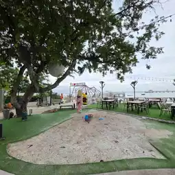 🤸♀️ There's a small, fun, safe waterpark, a kids' gym, and a sand play area. If you're feeling bored, stroll along the beach at the Bridge of Love.