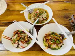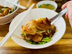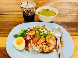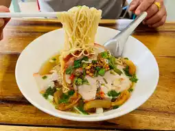 🎉🍜💓 Share this delicious restaurant! This shop sells wonton noodles in soup, dry wonton noodles, and red pork rice. Regular is 50 baht, special is 60 baht. Loaded with toppings and generous portions, delicious, clean, and high-quality ingredients.