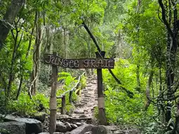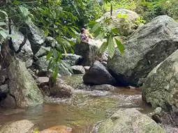 The waterfall is located approximately 15 kilometers from Sukhumvit Road, along Highway 3144 towards Wat Khao Mai Daeng or the Khao Kheow Open Zoo. There are signs along the way. Follow the road to the parking lot, then walk another 800 meters. Opening hours: 8:00 AM to 4:00 PM. ⏱️