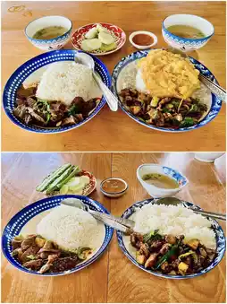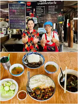🎉🍛🍜Don't miss this delicious restaurant! #CookedToOrder #JungleFood #Noodles - delicious and affordable, starting at only 40 baht. The restaurant offers a wide variety of dishes using premium ingredients, including a spicy and flavorful curry paste, shrimp paste, and fresh vegetables. Free! Homemade pork rinds. The lovely owner, Auntie Lai, is ready to serve delicious dishes. The restaurant is spacious, clean, and has a great atmosphere. Good service and parking is available. 💓Ann comes here often and the food is truly delicious. This is another delicious restaurant in Sriracha. Don't miss it!