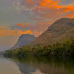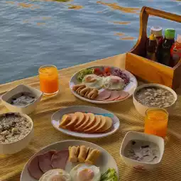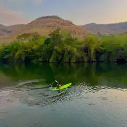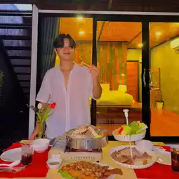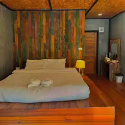 This is a raft house with a great atmosphere. It feels like you are surrounded by nature. You can row a boat in front of your room and chill. We really like the mood in the evening. The mountain and river views are the best.