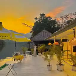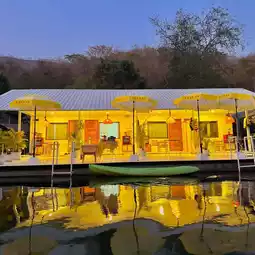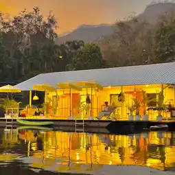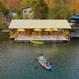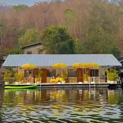 Go to sleep in a floating house near Erawan Waterfall. This place has been newly opened for a short time. The interior is decorated in a minimalist style. There are many cute photo spots. The atmosphere is super good, quiet, and very close to nature. In the evening, eat delicious grilled pork and watch the sunset. It heals your heart to the max. 🫶🏻🛶🏞️