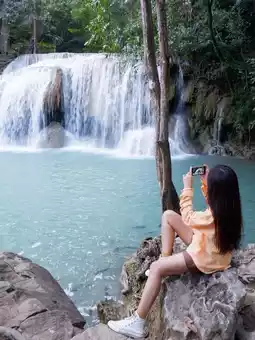 - For brunch, we stopped by to eat "Erawan Waterfall" before checking in to our accommodation.