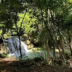 Huai Mae Khamin Waterfall is located within the area of Srinakarin Dam National Park in Kanchanaburi province. The waterfall originates from the Kala mountain range in the eastern part of the park and flows down into the Srinakarin Dam reservoir. The waterfall cascades down in seven tiers, each with its own unique beauty, making it one of the most beautiful waterfalls in Kanchanaburi.