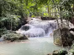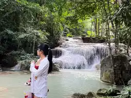 🌊 Erawan Waterfall in Kanchanaburi is truly a paradise for nature lovers! The 7-tiered waterfall is sparkling emerald green, and you can clearly see fish swimming on every level. 🐠✨