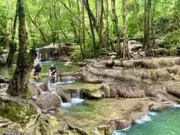 Located about 130km from Bangkok, Erawan National Park, known for its beautiful nature and waterfalls, is a popular day trip destination. The seven-tiered Erawan Waterfall features clear, emerald-green water that's suitable for swimming.