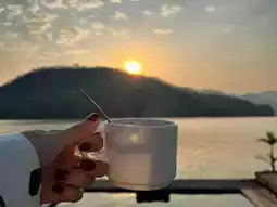 Wake up to fresh air and a light mist over the water, feeling like you've stepped into another world ☁️