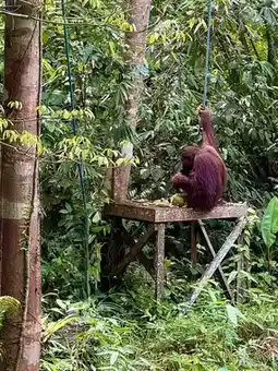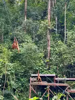 From the main entrance, it’s a bit of a walk to the viewing area, but you can also take a shuttle if preferred. The highlight? The feeding sessions held at specific times, where semi-wild orangutans emerge from the forest for food — a truly magical and humbling experience.