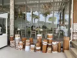 Hello everyone! Today, I'm going to review a beautiful cafe in the Sichon area of Nakhon Si Thammarat. This cafe is right by the sea and has a great atmosphere. There's plenty of seating, parking, and a diverse drink menu. There are plenty of beautiful photo spots. You really have to visit at least once! It's truly beautiful.