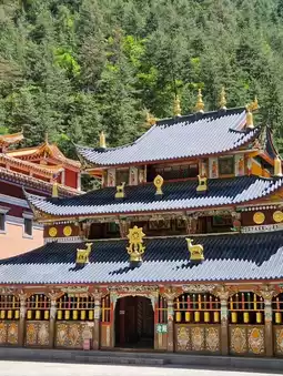 #springitinerary Exploring the Tibetan villages and temples in Jiuzhaigou during spring is honestly a total reset for the soul. Everything feels peaceful and super alive, flowers starting to bloom, prayer flags fluttering in the breeze, and snow-dusted mountains in the background. The temples are colorful and calm, filled with incense and quiet chanting that instantly slows you down.