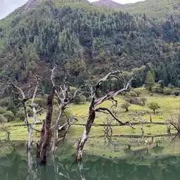 #chinatravel Exploring Longzhucuo Lake in Sichuan was like finding a hidden jewel tucked between the peaks. The water is so clear and still that it mirrors the sky perfectly, with snowy mountains and pine forests framing the edges like a painting. The walk to the lake is peaceful, with crisp mountain air and the occasional flutter of prayer flags adding a splash of color to the landscape.