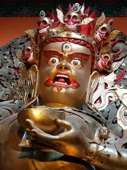 At Muya Monastery, also known as Tashi Gonsar Monastery in Sichuan, there stands a magnificent golden statue that shines brightly against the mountain sky. The statue, representing a revered Buddha, reflects peace, wisdom, and compassion. Its grand size and fine details show the deep devotion of Tibetan Buddhism. Surrounded by colorful prayer flags and the sound of chanting monks, the statue creates a powerful sense of calm and spirituality. Visitors often feel awe and serenity while standing before it, as if time slows down in the presence of such sacred beauty.