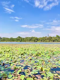 The water lilies floating on the surface of the quiet lakeside that can be seen while crossing the bridge to the island are beautiful🪷