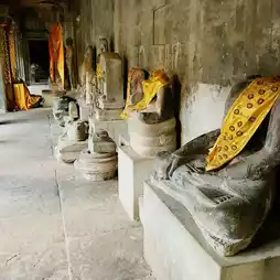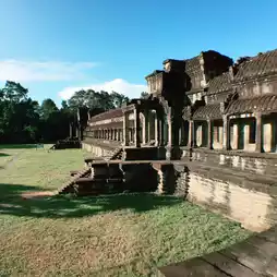 As the sky awakens in hues of gold and crimson, Angkor Wat emerges from the mist, its grand towers silhouetted against the rising sun. Walking through the ancient remnants, every weathered stone whispers stories of a glorious past, a testament to Khmer heritage. The reflection in the lotus-filled moat is pure magic—an unforgettable moment of serenity and awe. A timeless wonder, forever etched in memory.