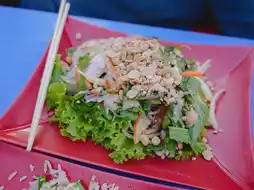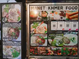 For the first meal, we went to Manet Khmer Food. We ordered fried rice with eggs and seafood salad. The taste was okay. The price was not too expensive. The shop is on the side of the road, near the night market.