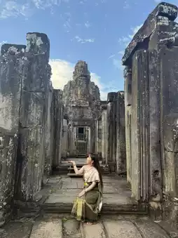 Start your day early to witness the breathtaking sunrise over Angkor Wat, the world’s largest religious monument. As the golden hues reflect on the temple’s intricate carvings, you'll understand why this UNESCO World Heritage site is a must-see. Take your time exploring its detailed bas-reliefs and towering structures. Tip: do not forget to try Khmer traditional clothes to take pictures 🥰