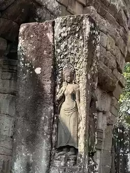 DAY 3: Angkor Thom🏞️->Bayon Temple (Twelve Faces Tower)🗼->Ta Prohm Temple🏯->Angkor Wat🕌. Explore the ancient Angkor Thom, admire the exquisite carvings of the Bayon Temple, experience the tranquil atmosphere of Ta Prohm Temple, and finally, marvel at the grandeur and mystery of Angkor Wat.