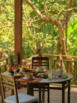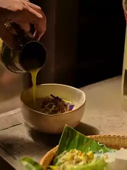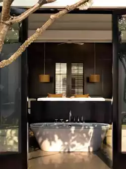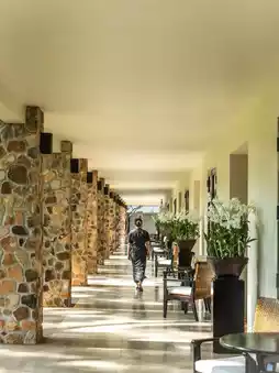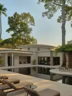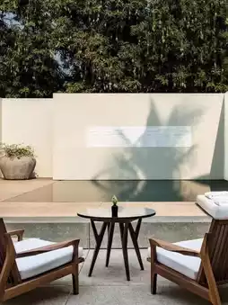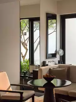 The hotel has only 24 rooms or suites, including Amansara Suites, Courtyard Suites, and Pool Suites, all of which are made of light-colored terrazzo and solid wood. The bedrooms and living rooms are integrated, and floor-to-ceiling glass doors lead directly to private garden courtyards. Some suites also have private pools. For dining, the hotel's circular restaurant serves traditional Cambodian cuisine and international dishes. Guests can also dine in the outdoor poolside pavilion or at a Khmer farm in the Angkor countryside.