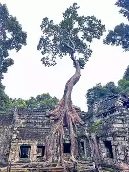 3. *Ta Prohm*: Dating back to the late 12th and early 13th centuries, it's known for the way the jungle has reclaimed it, with tree roots growing over and through the stone structures.