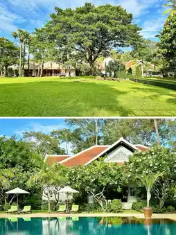All 119 rooms and suites are adorned with Cambodian artwork and vintage furniture, some of which date back to the hotel's opening. The rooms offer expansive views overlooking the pool or the Royal Gardens, with some featuring balconies for meditation or sightseeing. Facing the Royal Palace and just 8 kilometers from Angkor Wat, the hotel allows guests to immerse themselves in the depth of Khmer culture while enjoying modern luxury and comfort.