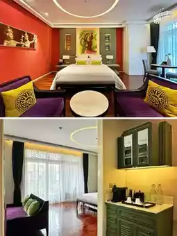Inside the suite, purple accents exude elegance, while European furniture and Khmer portrait art create a unique aesthetic. The cooking school is a highlight—the chef guides you through local flavors, from market to table, culminating in a souvenir certificate. Additionally, yoga classes rejuvenate the body and mind, while the spa’s ancient techniques ensure deep relaxation~ You can even customize a sunset temple tour. This isn’t just a place to stay—it’s a microcosm of Siem Reap’s culture, where ancient traditions and modern energy intertwine, crafting a journey filled with sunshine and smiles.