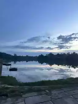 The sound of frogs croaking and the shadow of the tower reflected on the water... It was a time that felt like another world, where nature and history blended together in the silence.