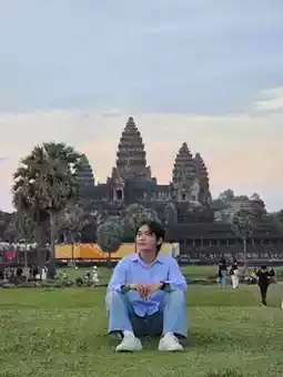 A fresh morning at Angkor Wat is a magical experience, where the first light of dawn washes over the ancient stones in soft golden hues. The air is cool and crisp, carrying the earthy scent of dew-kissed grass and the faint murmur of monks chanting in the distance. As the sun rises behind the temple’s iconic spires, the reflection shimmers in the surrounding moat, creating a scene of serene beauty. Birds flutter between the towering trees, their songs blending with the rustle of leaves, while early visitors walk in quiet awe through the grand corridors. The tranquil atmosphere, free from the day’s crowds, makes it the perfect moment to appreciate the timeless grandeur of Angkor Wat, as if stepping back into history.