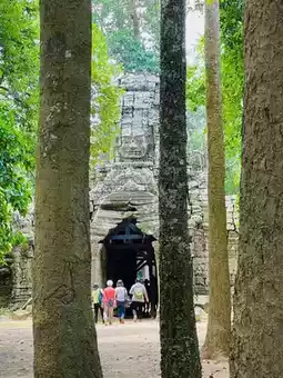 - **Less touristy** than Ta Prohm but equally atmospheric, with giant silk-cotton trees and crumbling galleries.