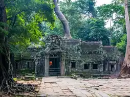 Within the larger Angkor Thom complex lies Bayon, famous for its numerous stone faces, each with a subtle smile, adding to the temple's unique character.