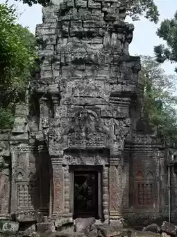 Carved lintels: Intact depictions of Buddhist Jataka tales above doorways.
