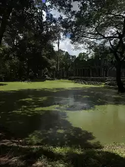 Preah Khan Temple is already packed with ancient treasures, but if you visit during Cambodia’s rainy or ‘green’ season, you’ll catch the ultimate highlight: the legendary Matcha Lake 🌱. Thanks to seasonal downpours, the lake lights up in vibrant emerald shades—seriously, it looks like somebody poured a giant cup of matcha here! The effect is breathtaking, with moss and lush aquatic plants popping off the water, creating a magical vibe that you *have* to see in person.