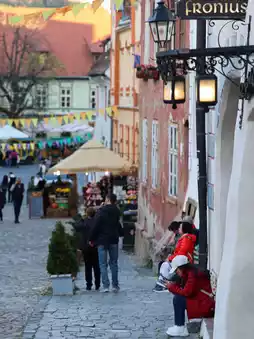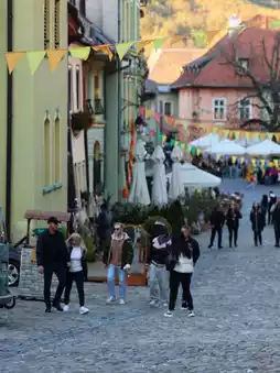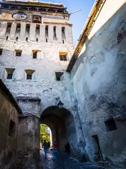 From beneath the clock tower, small souvenir shops line the streets. People stop, take photos, and stop to buy magnets bearing Vlad's face, looking as real as a cartoon illustration.