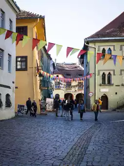 We hadn't been there long before we stopped in front of a simple yellow house. A wooden sign above the door read "Casa Vlad Dracul"—the house believed to be the birthplace of Vlad III. He was born here in 1431, during the time his father, Vlad Dracul, resided in the city. The name "Dracula," in Bram Stoker's novel, is descended from Dracul—"Son of the Dragon."