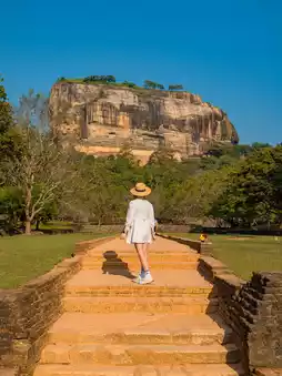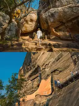 The floating palace (Sigiriya Rock Fortress) is one of the eight world heritage sites in Sri Lanka in the city of Sigiriya. This is the highest peak. You have to climb 2,200 steps. In the past, this peak was a palace and fortress, known as LION ROCK. There is a rough legend here. Prince Kassapa killed his father, who was the king, and seized the throne in Anuradhapura. He then fled to build a floating palace in Sigiriya to prevent his brother from seizing the throne. It took 7 years to build until his brother finally led an army to take revenge and reclaim the throne. King Kassapa had no way to fight back. He ran out of food, so he killed himself on this palace. This is the origin of the name of the monument to the city of sin. In the past, it was both a fort and a castle, made of rocks. It is almost 200 meters high and is carved in the shape of a giant lion, but now it has collapsed, leaving only two lion feet on the way up to the top. The floating palace only. Plus, there are still frescoes. The ancient temple is still intact. Therefore, it has been considered a UNESCO World Heritage Site. It is the 8th wonder of the world. For those who want to visit, the entrance fee is 35 USD (1,180 baht) per person. They will give you a barcode. Scan it to enter. It is open every day from 5:00 AM to 6:30 PM.