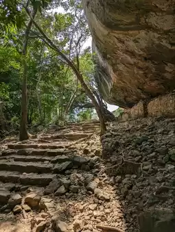 From here, you can enjoy a panoramic view of the town of Sigiriya, dotted with rocky landscapes.