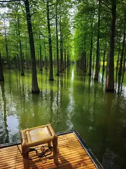 ► The boat and bamboo raft are two separate activities. The boat passes through the reed maze to the island, while the bamboo raft is self-paddled in the dawn redwood forest. Bamboo raft in the redwood forest costs 60 RMB/half hour.