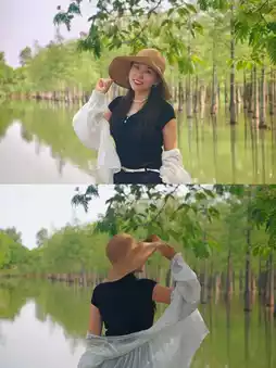 ► The most photogenic spot is the dawn redwood forest, currently the main recommendation in the little guidebook. Two recommended photo spots: one is on the left side at the entrance of the redwood forest, where you can capture the whole river and forest; the other is on the bamboo raft. (Refer to the first few portrait photos.)